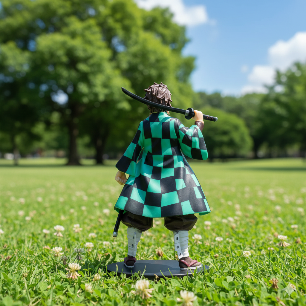 Outfit & Design: He is depicted in his classic Demon Slayer Corps uniform, covered by his distinctive green and black checkered haori. The sculpting and paintwork appear precise, replicating the character's on-screen appearance with vibrant, accurate colors.